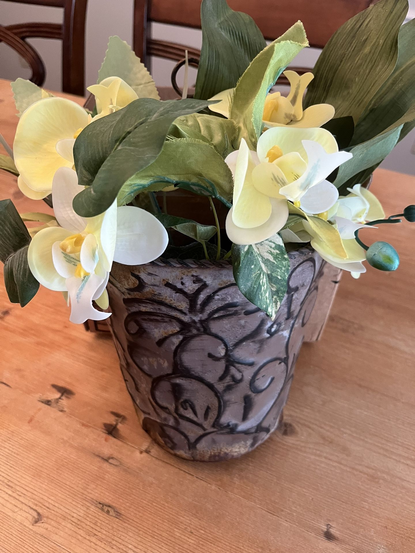 Metal decorative hanging basket thing. Can be indoor or outdoor.