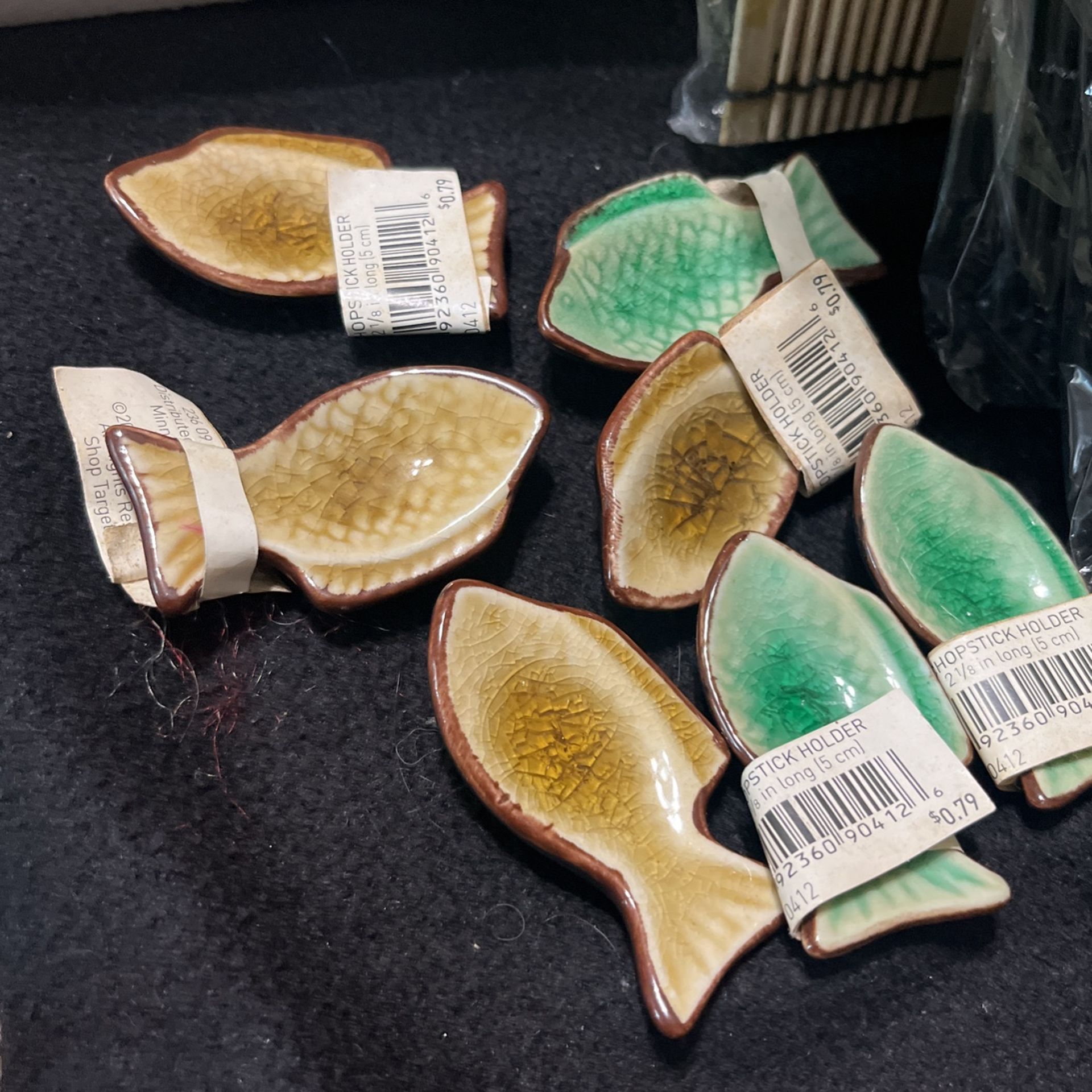 These are all brand new never use small little box full of bamboo, coasters, bamboo, placemats, some chopsticks and chopstick holders little fish, ceramic ones very cute serious inquiries only please must be able to pick up