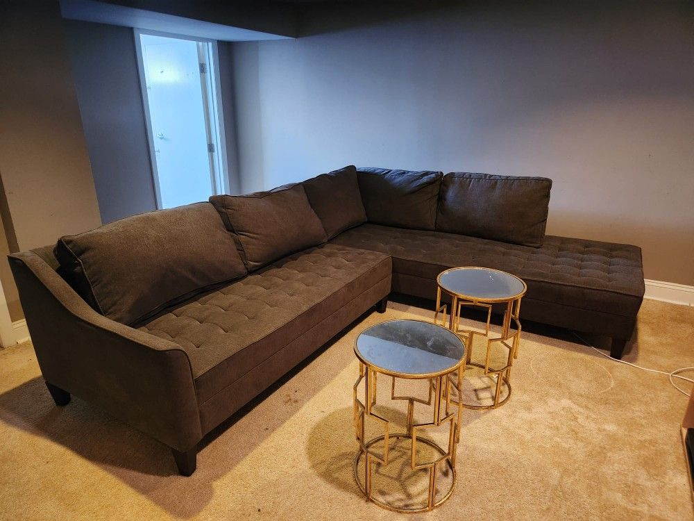 Two piece sectional, treated with fabric defense. No stains, rips, or damage - looks brand new. Smoke-free home.