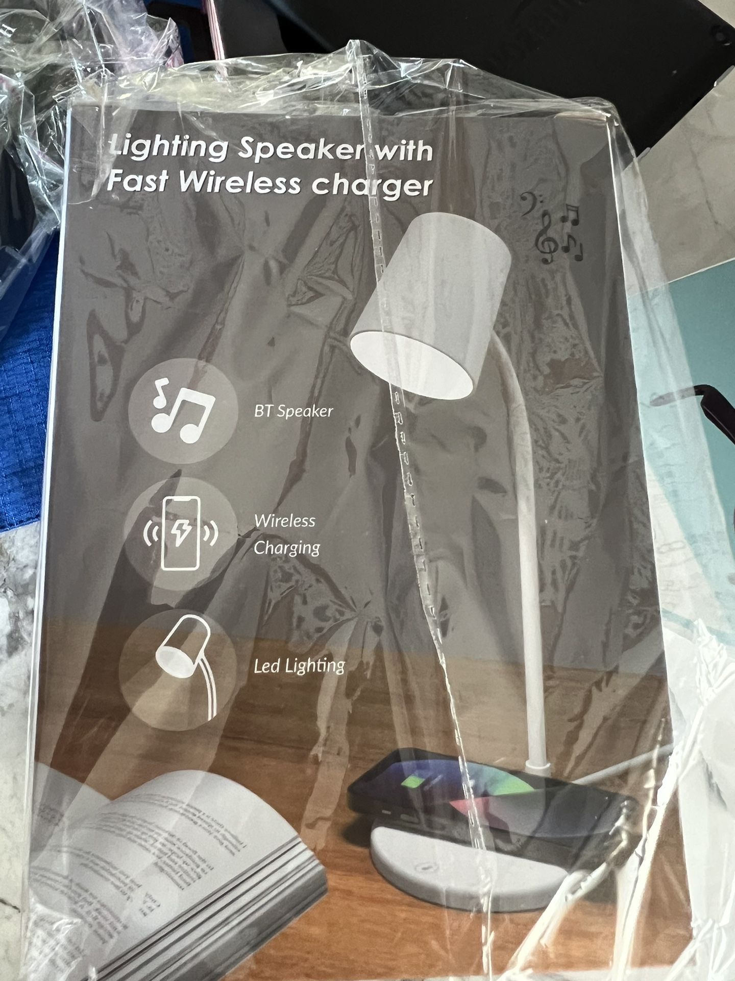 Lighting speaker with fast wireless charger