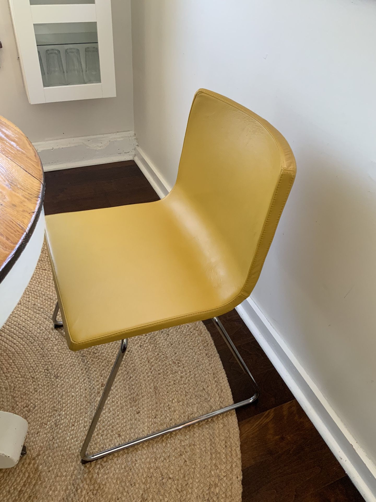 Chrome plated under frame is topped with a soft padded seat in durable leather,this chair is extremely solid,wont tip, .Great for children