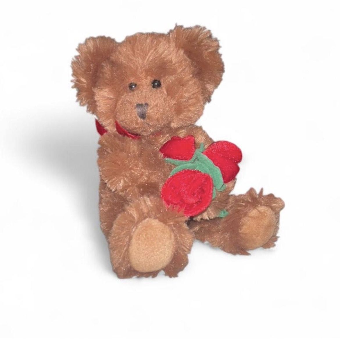 Valentines Day Hand-Sized Small Brown Teddy bear with red roses