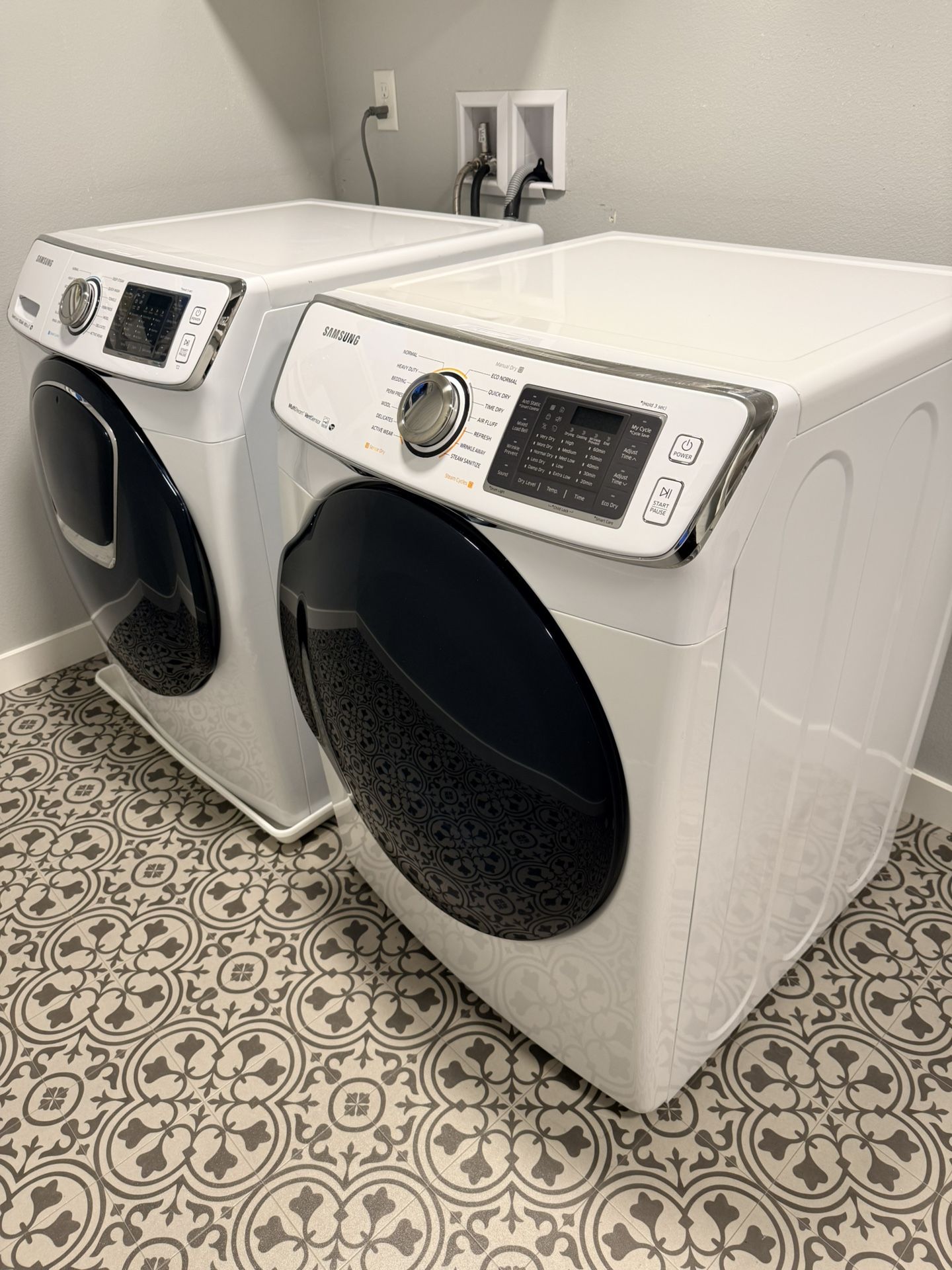 Samsung washer and dryer set in excellent working condition. Purchased May 2018, well maintained, no scratches or dents, and very clean. Recently disconnected and stored in our garage — ready for easy pickup. Models: Washer: Samsung WF45K6500AW/A2 Dryer: Samsung DV45K6500EW/A3 (electric) Details: Large capacity front-load washer Matching electric dryer Quiet, reliable, and efficient All cycles and features work as they should Can be set side by side or stacked Clean interior and exterior Selling as a set only. Great option if you’re looking for a dependable washer/dryer without paying new prices. Cash or Venmo.