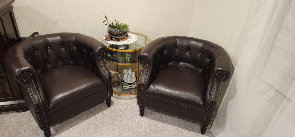 Faux leather chairs Perfect for office Used but very good condition Delivery can be arranged.
