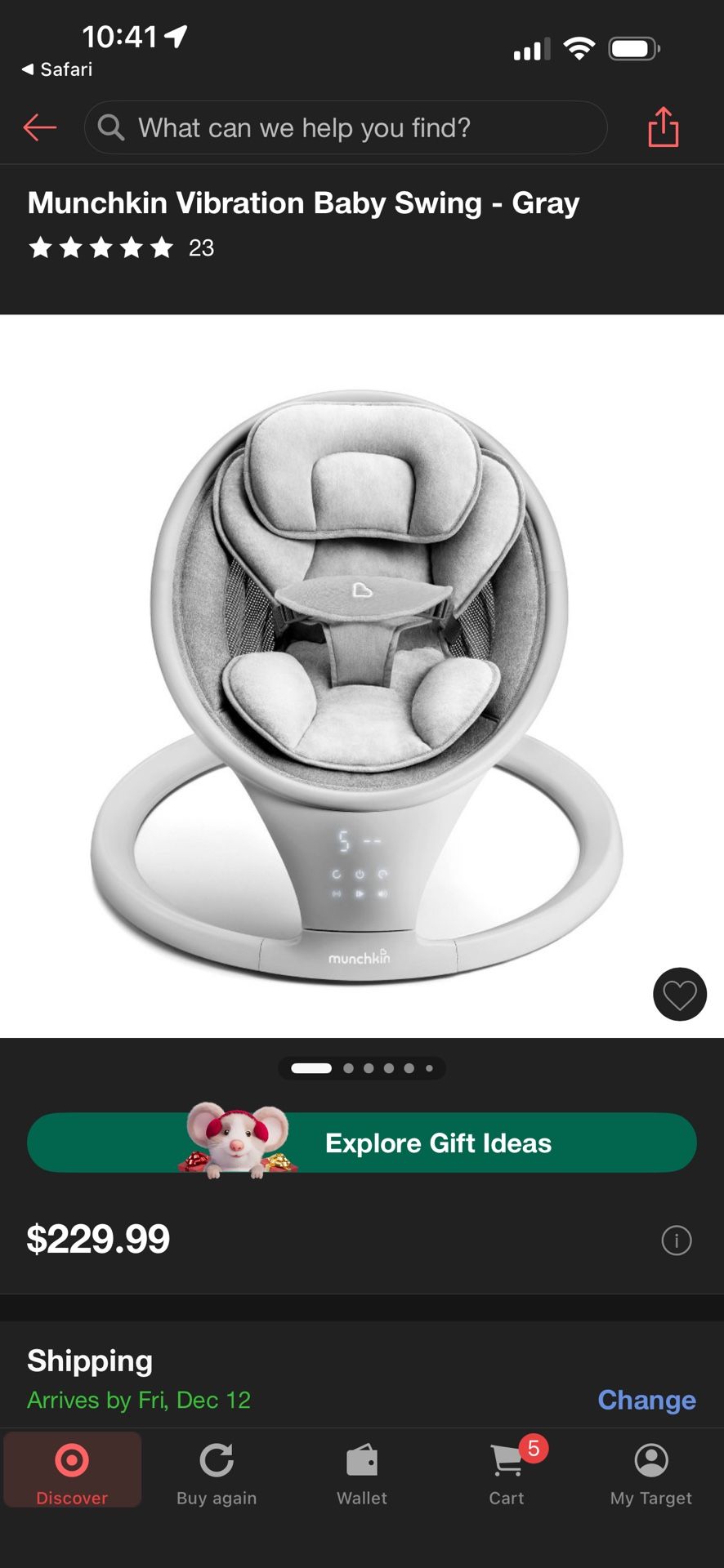 Munchkin baby swing Perfect condition Barely used This swing is magical babies fall asleep in it so fast ! It vibrates plays music and also plays white noise Originally 250