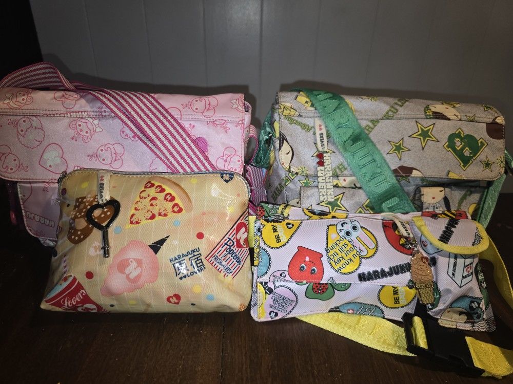 Pink messenger bag NWT & charm $25 Green messenger bag $15 Yellow belt bag $15 Pouch $5 Pick up in Makakilo Cash only Bundle deal available