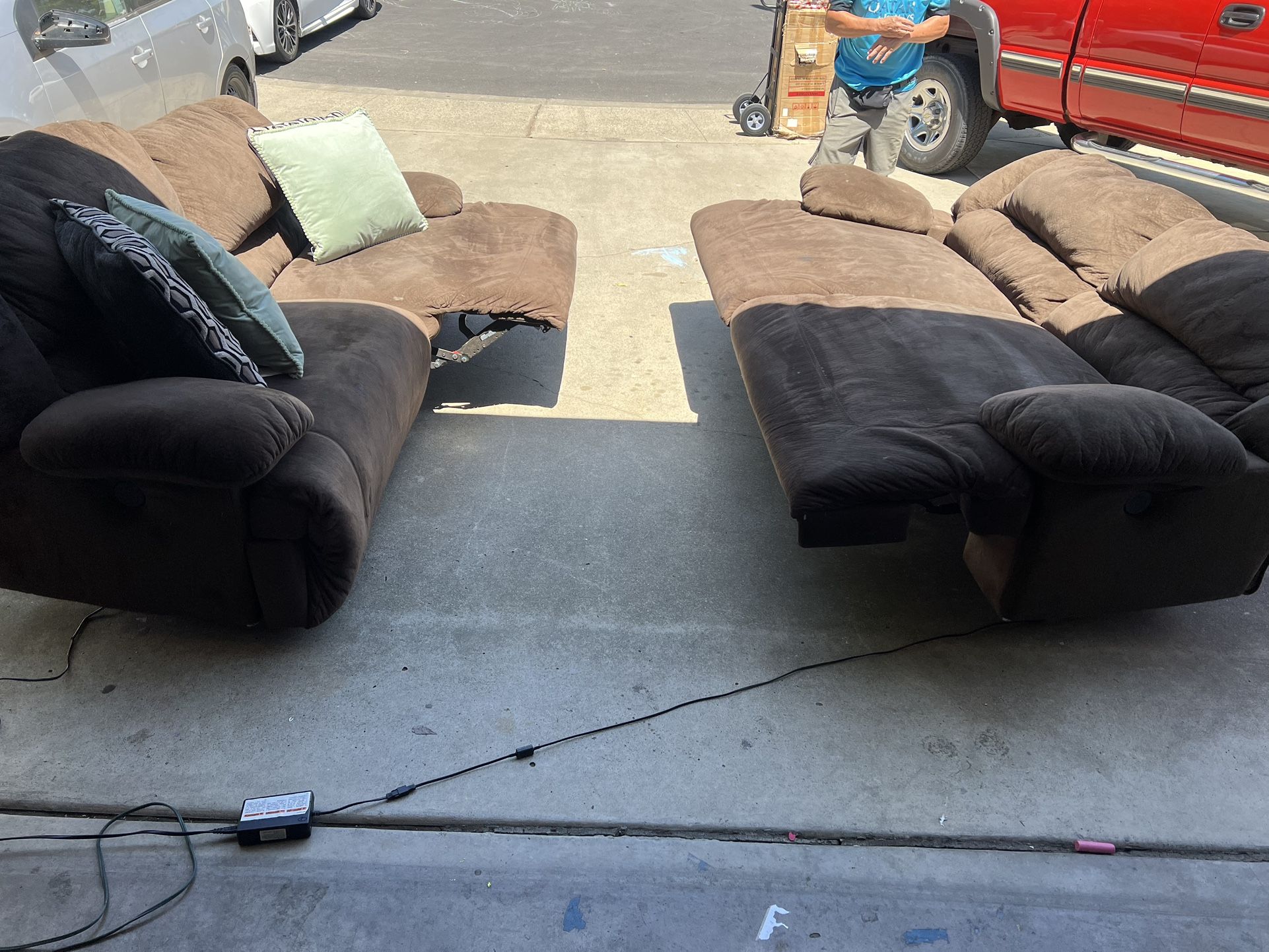 Both recliners work on each side. great condition! Cleaning will make it perfect. $350 for both.. smoke free home, no pets have been on the furniture. Pillows not included.