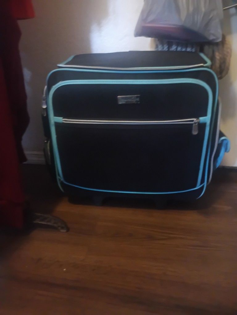 Recollections 17"x8"x15" Black & Teal Rolling Craft Tote