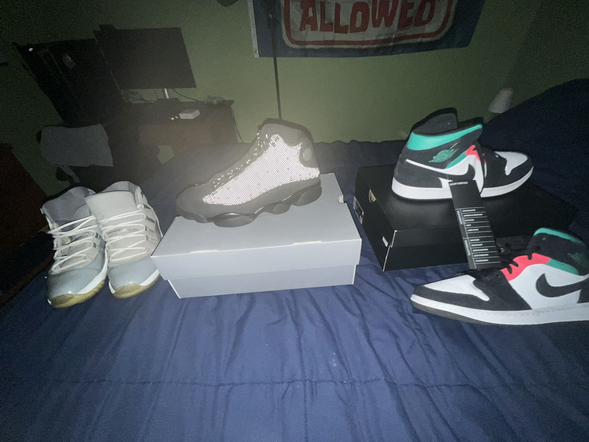 Jordan 13 black cat, 12 tried on Jordan 1 mid “south beach” used size 12.5 Jordan 11 Cool Grey, badly beaten SEND OFFERS I SHIP