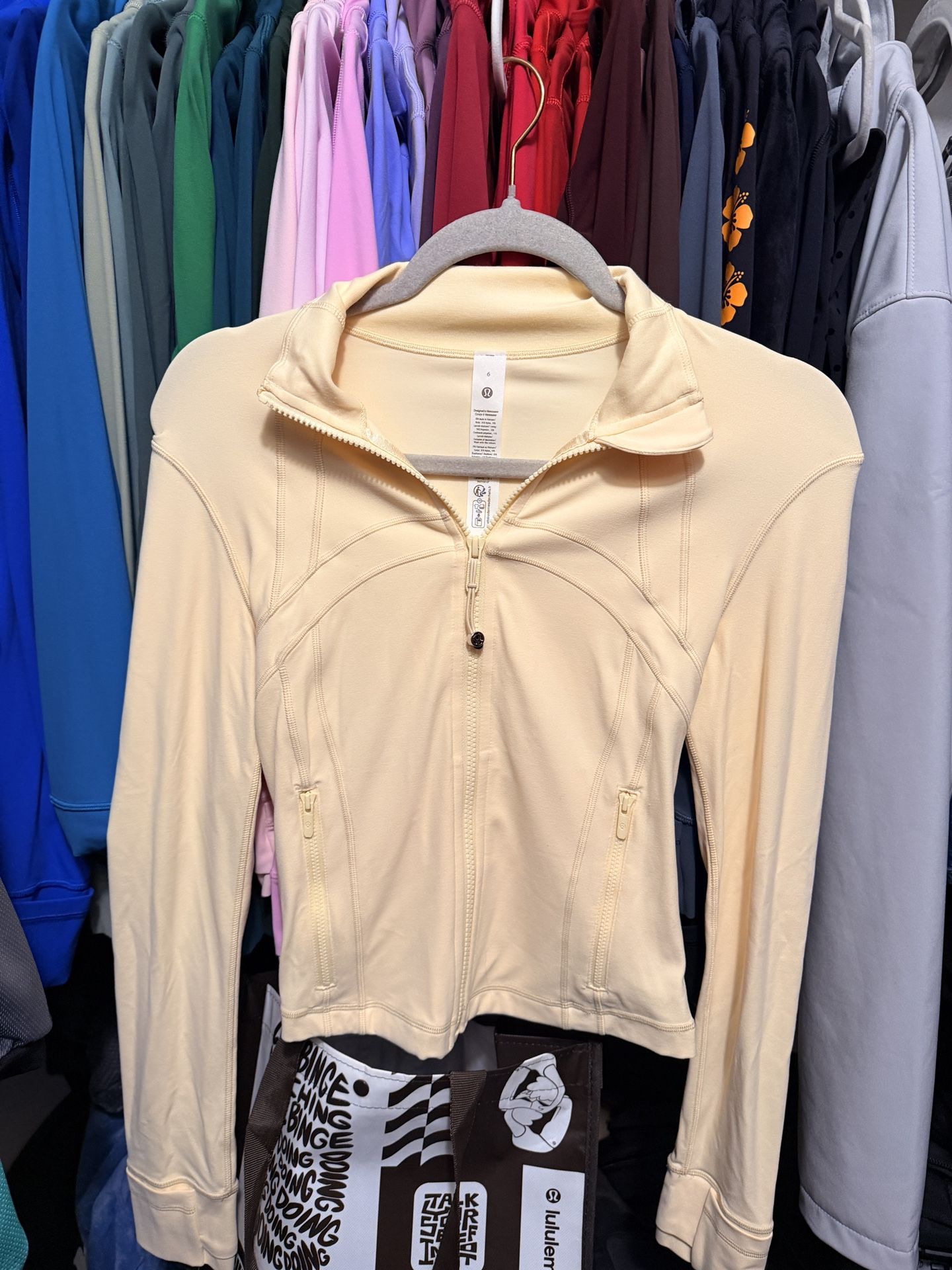 Lululemon Define Jacket, Buttercream cropped π Very rare, sold out within hours. Size 6 NWOT, never worn, rip tag attached. - Definitely fits a 4 ! being sold for 350+ everywhere jacket alone $280 shorts new with tags alone $80 firm take both for $330