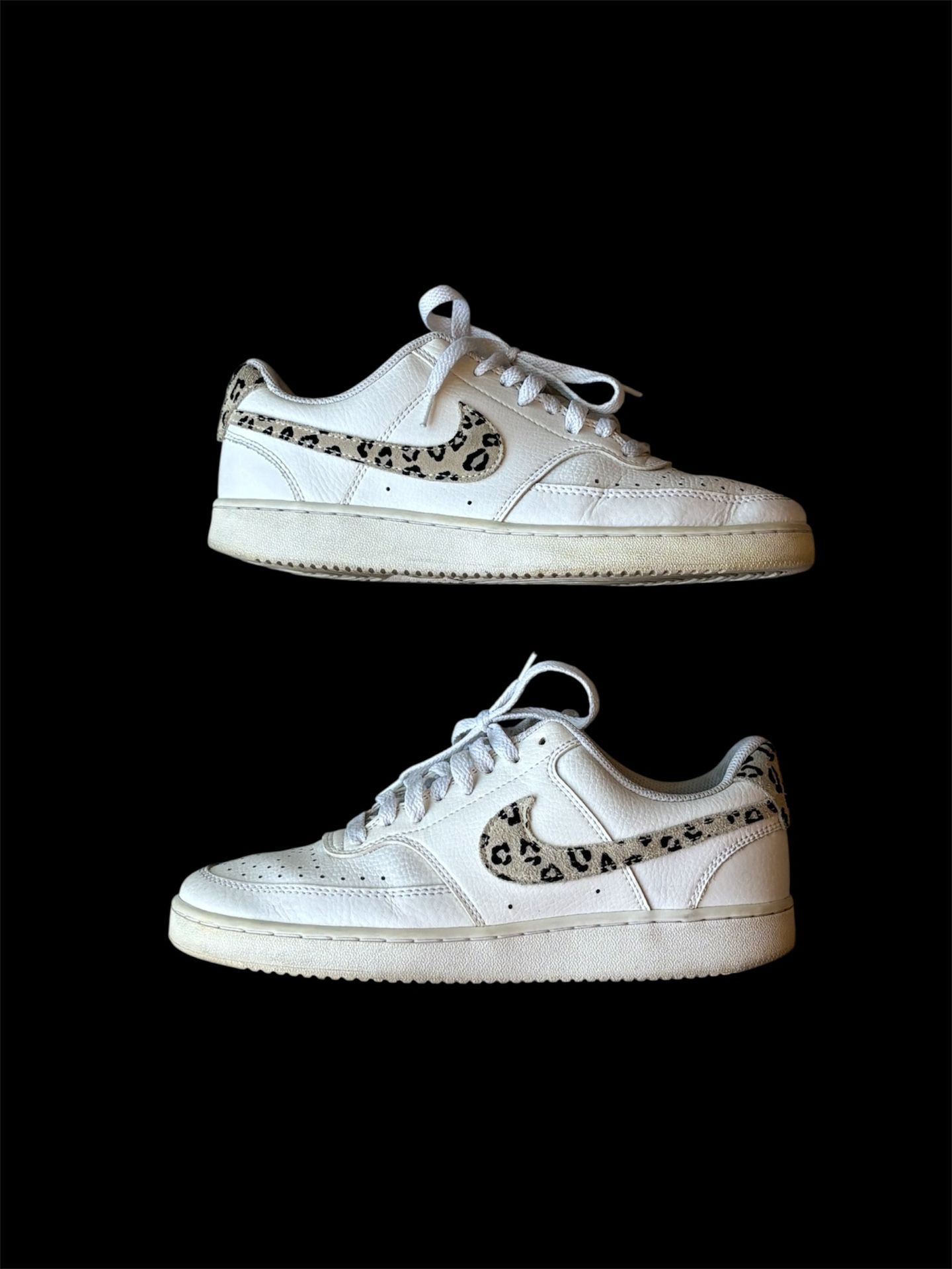 - white and leopard Nike court sneakers - women’s 8
