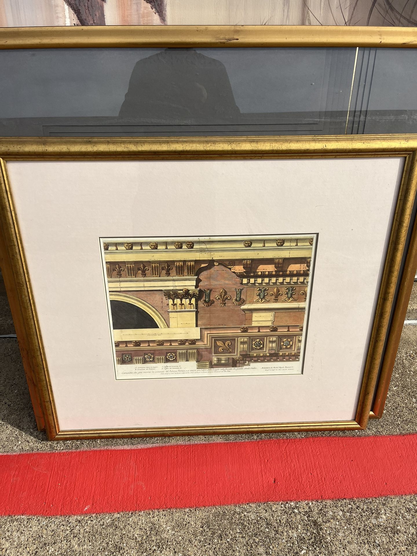 Vintage Michelangelo Framed Architectural Renderings Fine Art Print Classical Capital Column Italian Renaissance Gilt Frame Pier 1