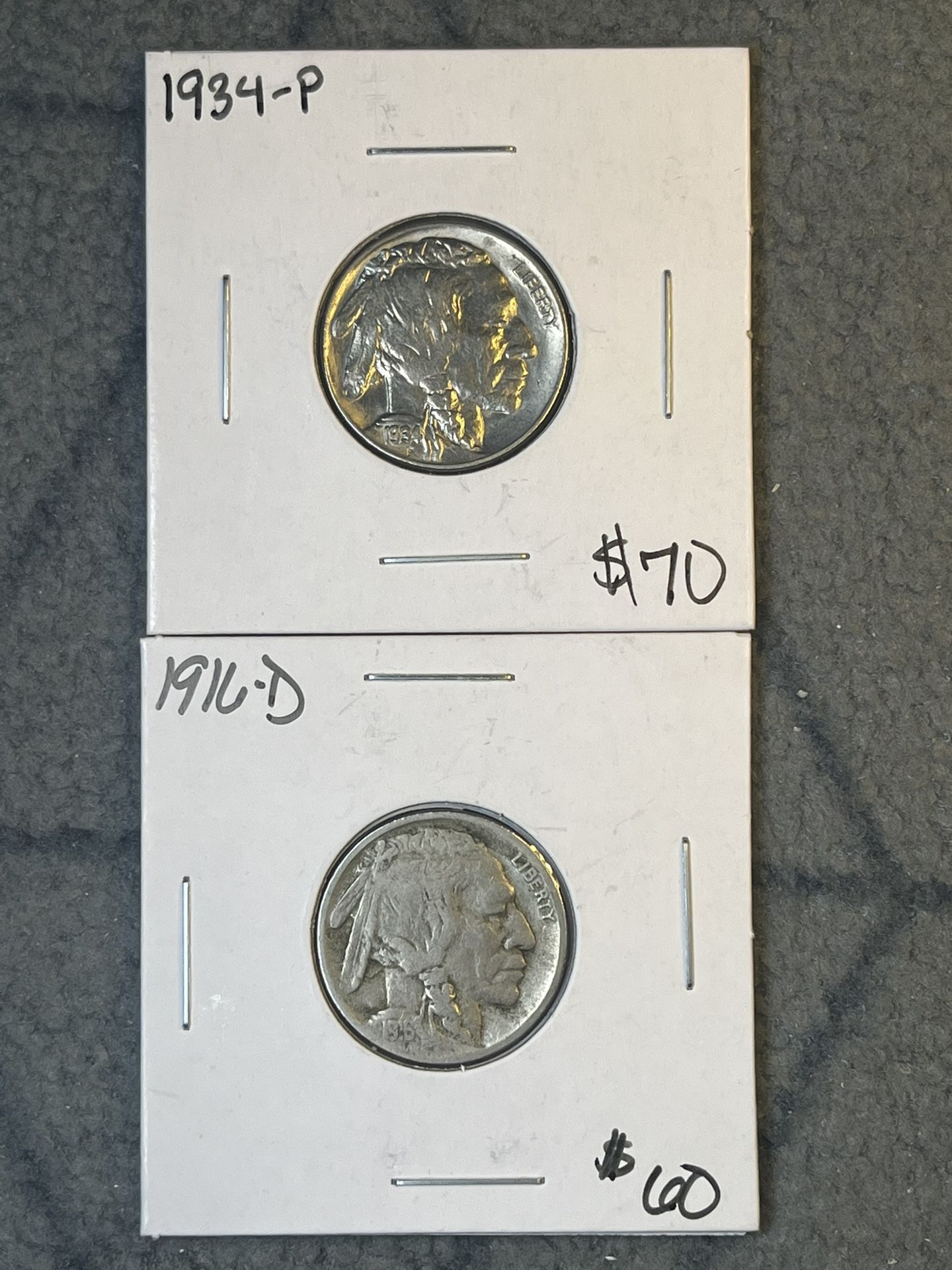 I have 2 nickels - 1934 P and 1916 D Buffalo 5 cents. Each was priced for $70 and $60 when I got it. Get both for $80. Hayward area meet ups. No shipping.
