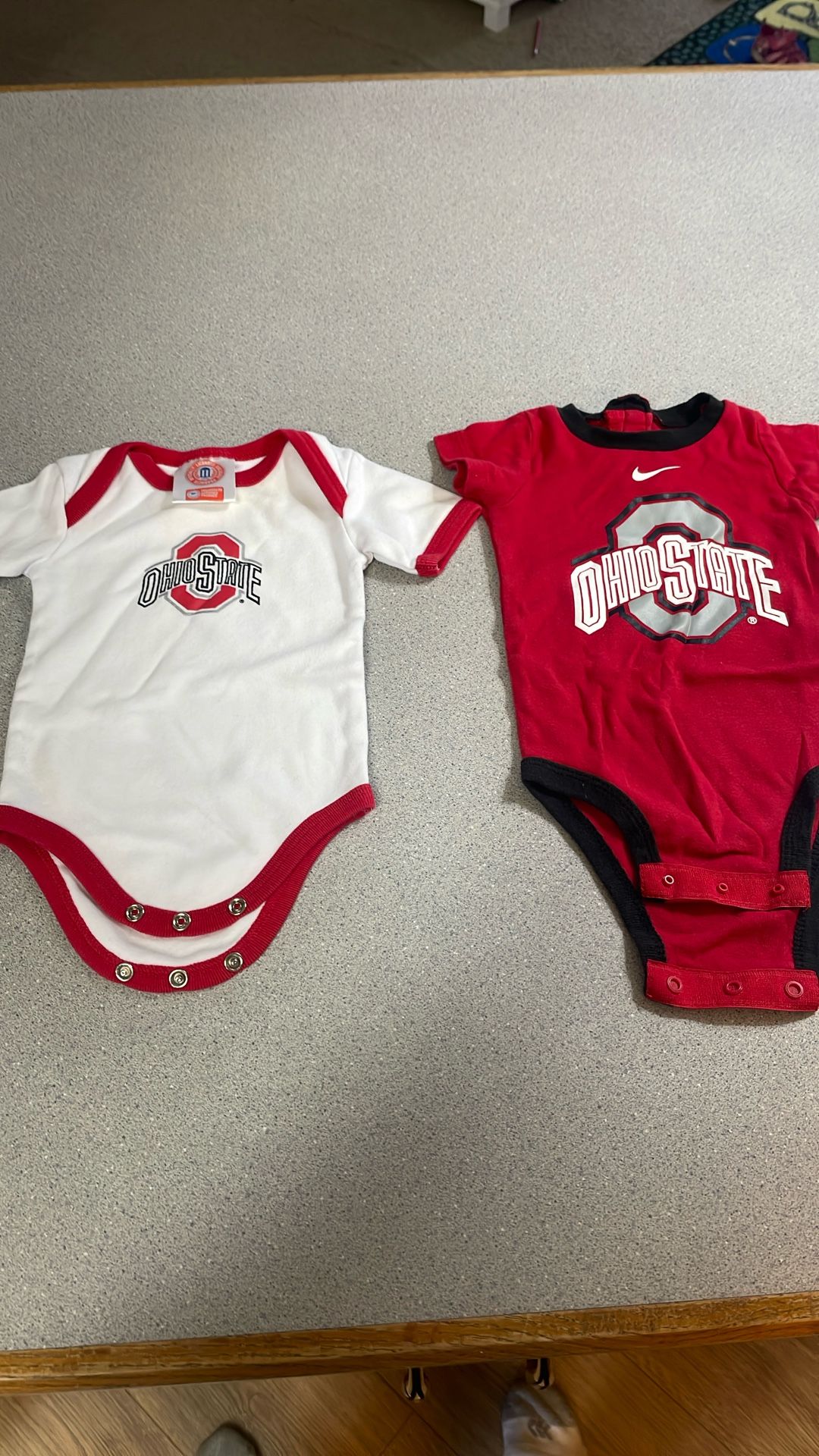 Adorable Ohio State Buckeyes baby onesies—perfect for the tiniest fan! Soft, comfortable fabric with official team colors and logos. Great for game days, photos, or everyday wear. Gently used and in excellent condition. A must-have for any OSU family!