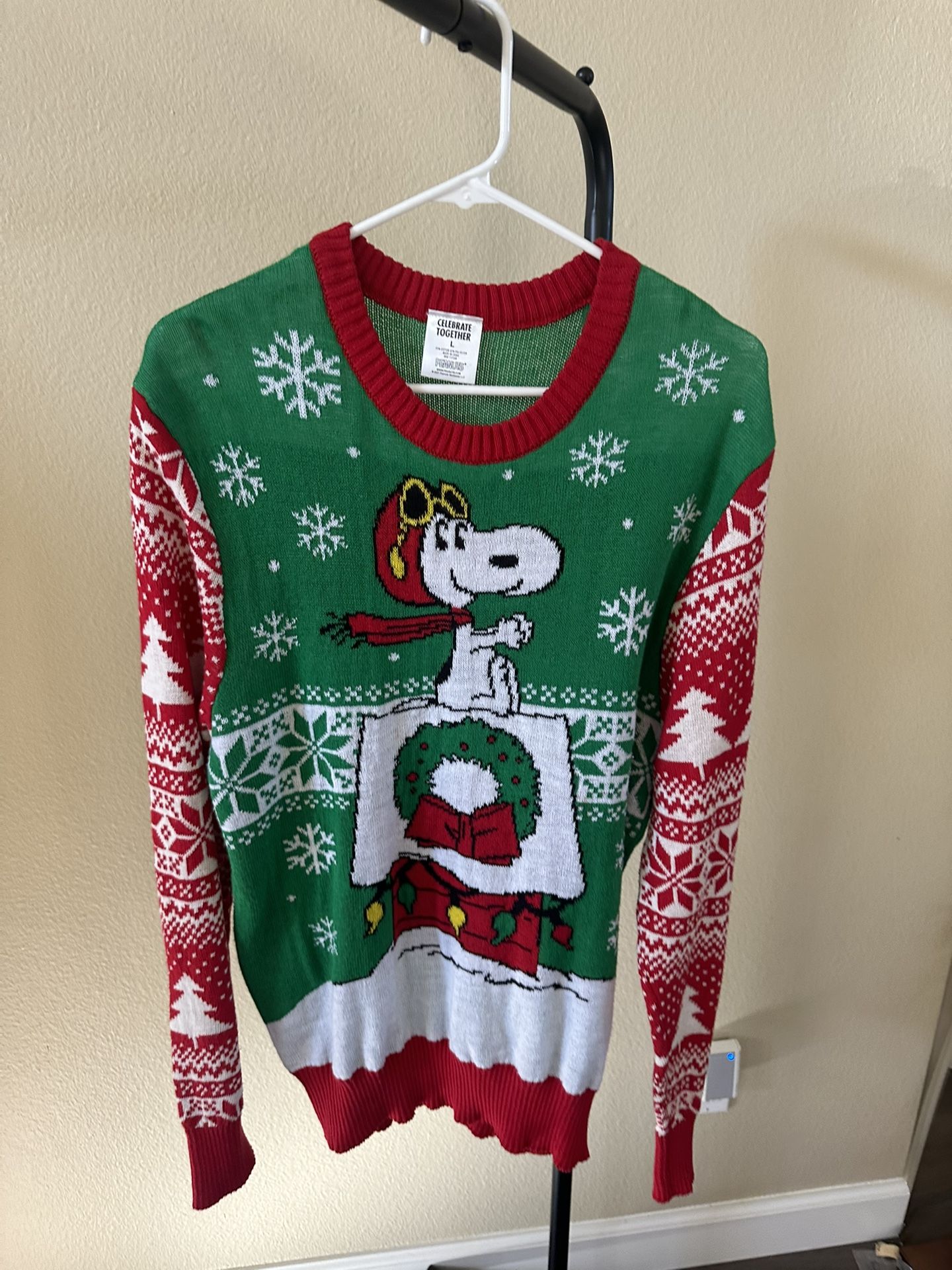 Men’s like new Large tops. Christmas sweater $20, Columbia jacket $10, Obey/Quick Silver/Huff tops 10 each & Travis Mathew & Apt9 tops $5 each . From smoke free home and no stains or snags!