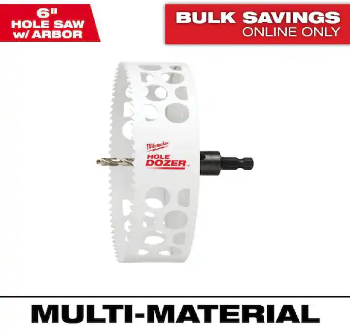 Milwaukee 6 in. Hole Dozer Bi-Metal Hole Saw with 3/8 in. Arbor and Pilot Bit=Milw-919