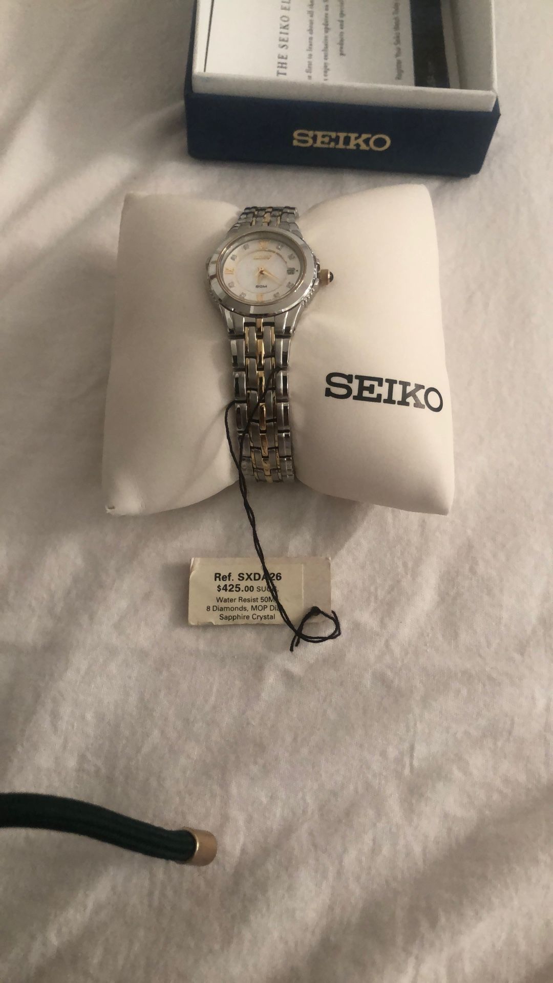 Seiko watch two tone gold and silver 50 MM easy clasp diamond on the face