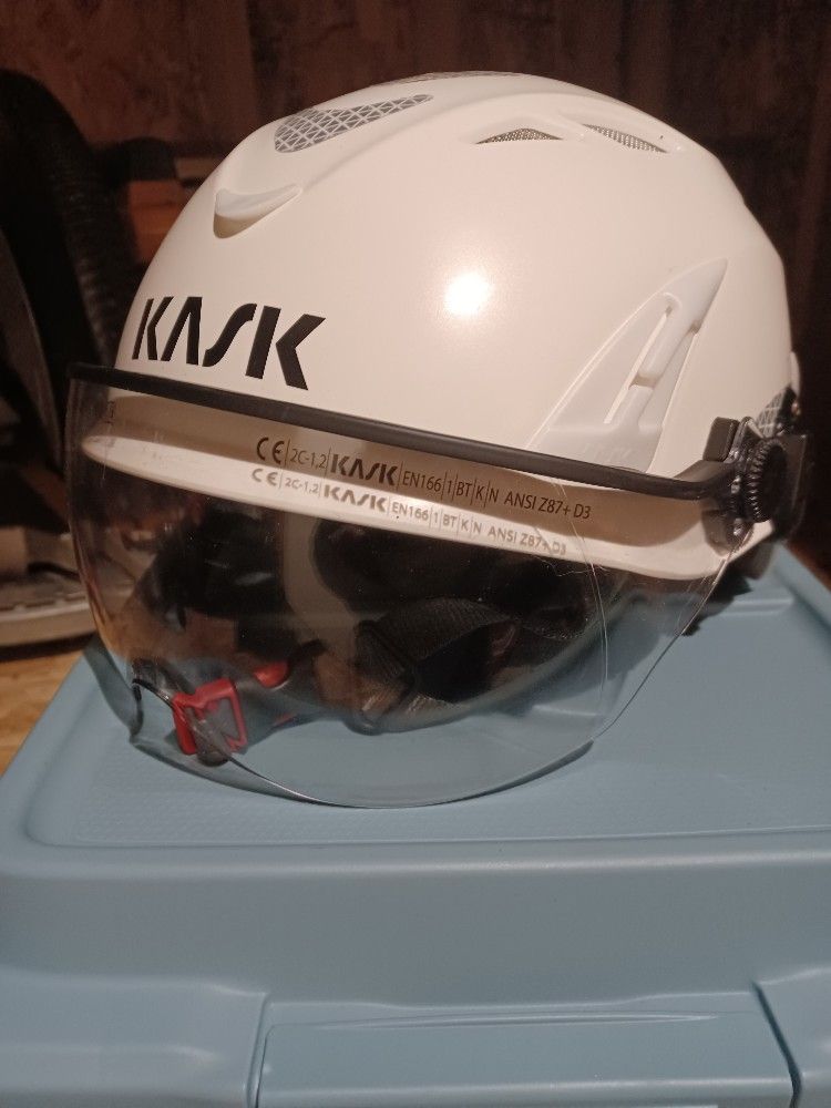 Item in NEW unused condition. It has only been test fitted at time of purchase, and installation of accessories. Never worn in the field. Many upgrades /accessories included, and are already mounted or installed on this Hardhat. They include the clear wrap around style lens for full eye, and upper facial protection, lens can be moved upwards where it will stay in position off of face until it is brought back down to protect eyes and face when needed. High visibility reflective decal set placed in several locations on surface of Hardhat. Clips mounted on sides, and rear for headlamp strap placement., Mounting brackets for over ear hearing protection to be clipped into. Padset on inner strapping for extra comfort. One size fits all, completely adjustable Hardhat weighs 1lb. 3 Oz., very light for comfortable, all day usage. With all of the upgrades, plus the online discount I used, the package cost me about $160.00, which was about $37.00 lower than the original price without the cupon I used. I'm asking $95 which is a great price for this unit being upgraded as it is.