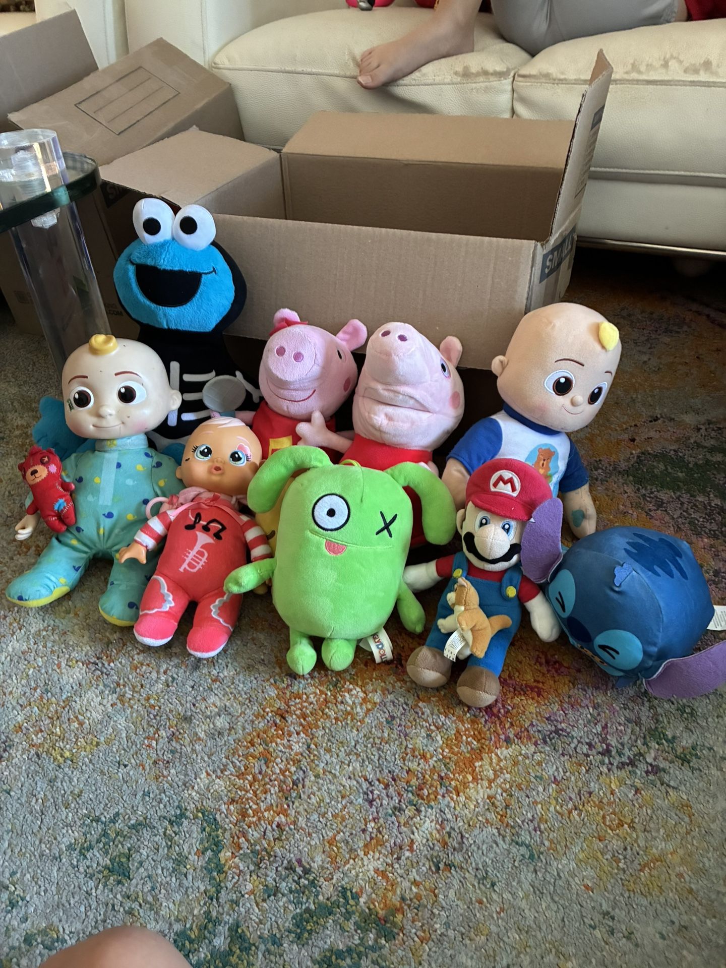 Toy lot In coco melon Cookie Monster Mario Peppa Stitch