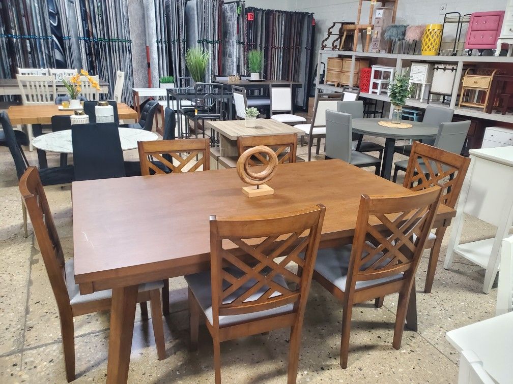 6 Pc Dining Set With 6 Chairs With Fabric Seats (New)
