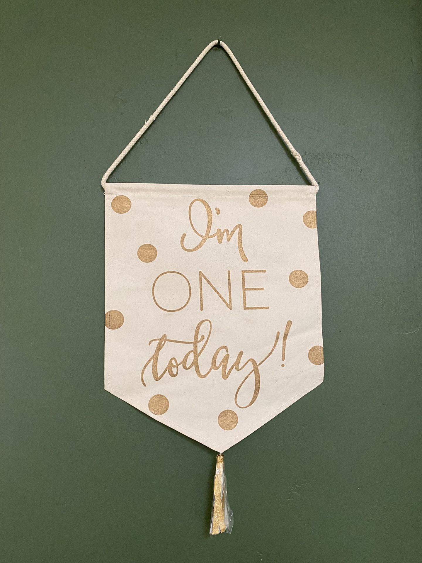 For one year old 14 inches wide 32 inches long from hanger to tassel