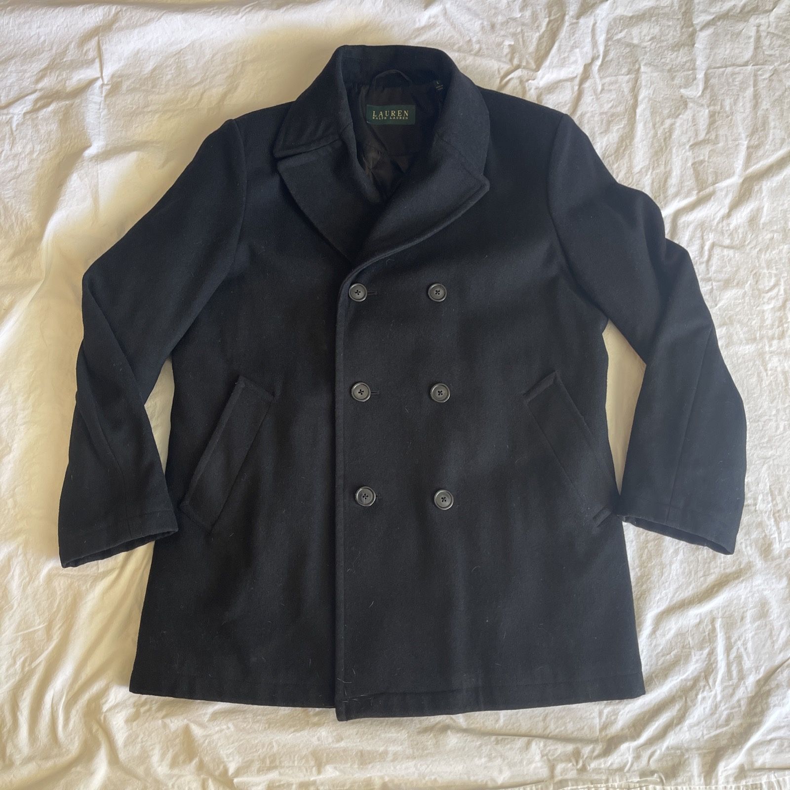 Lauren Ralph Lauren Mens Black Wool Peacoat Coat L Double Breasted jacket