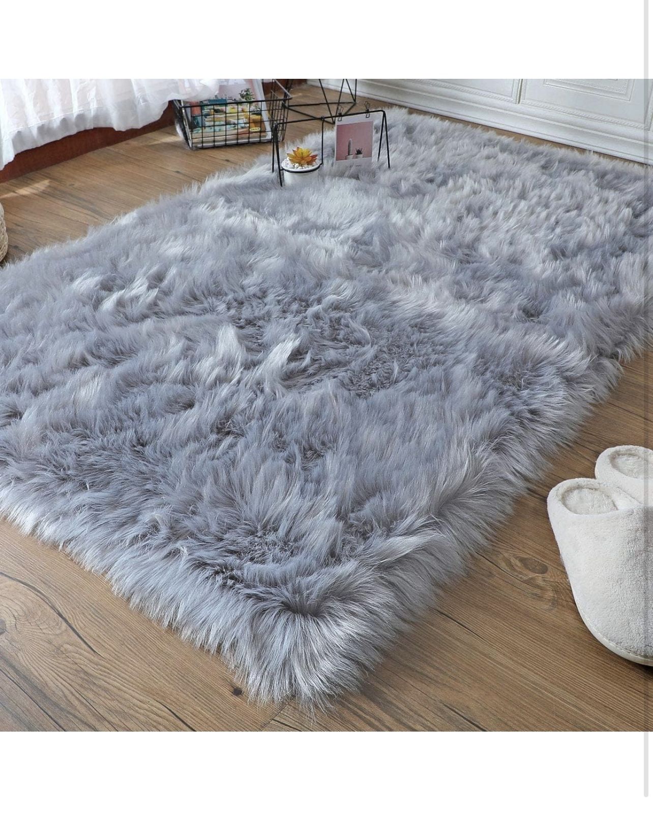 Soft Faux Fur Rug White Sheepskin Chair Cover Seat Pad Shaggy Area Rugs for Bedroom Sofa Living Room Floor (Gray, 2.5x4 Feet Square)