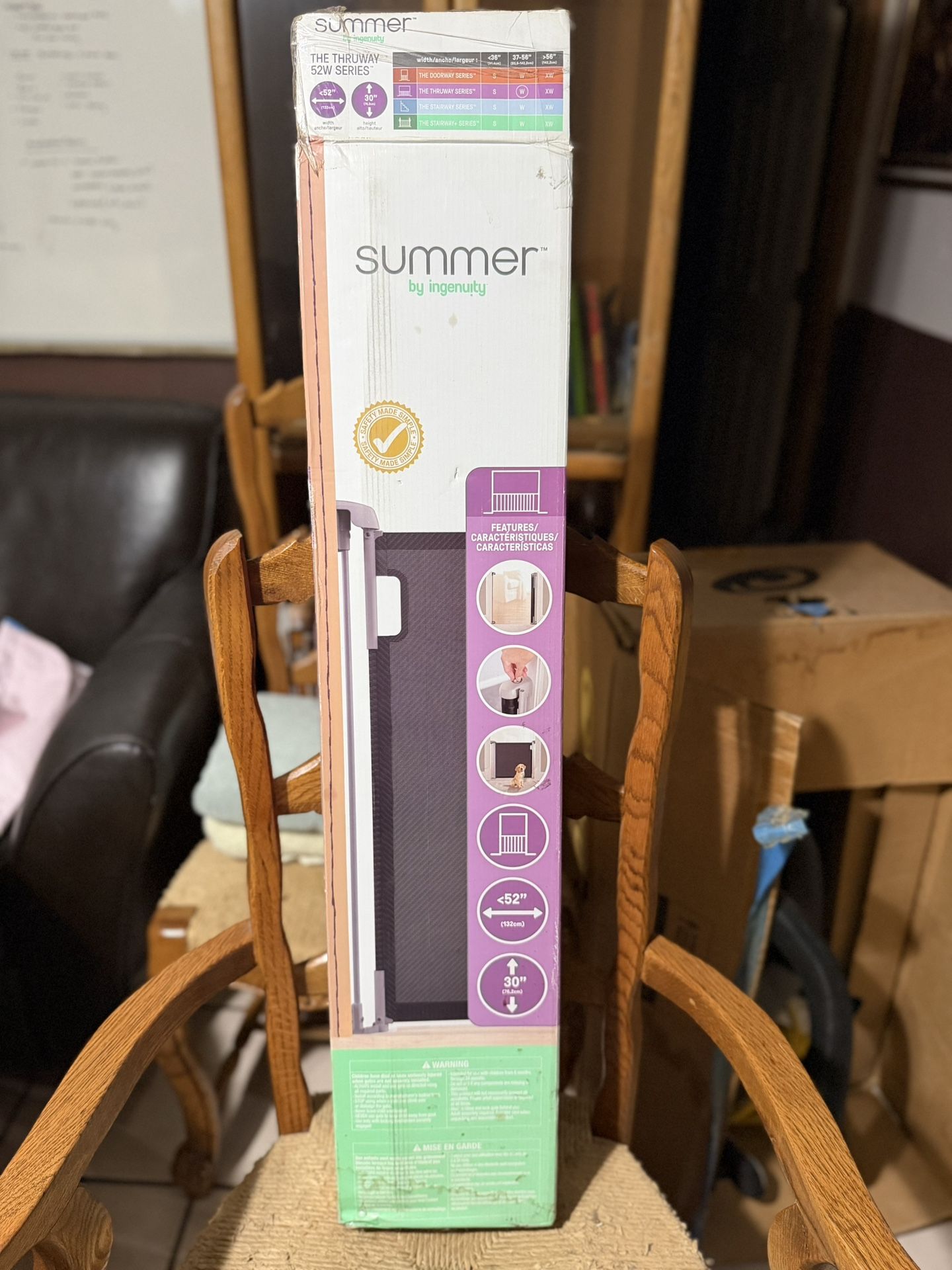 Purchased from Home Depot, never used because was wrong item for my home. To look up on Home Depot: the thruway 52W series per and baby retractable gate with tuck away mesh, hardware mounted, 30 in tall