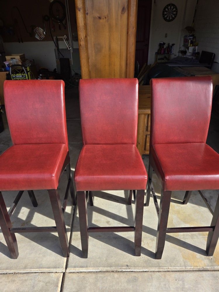 3 red faux leather barstool's sold as a set. Purchased from home goods. Good condition. Needs new home.