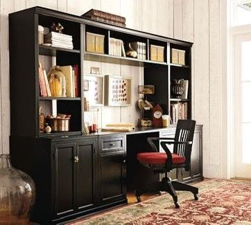 I have a ton of furniture in storage that I’d like to rehome… apologies for the catalog pic, but it’s wrapped and I don’t have the ability to pull it out and photograph. This is the Pottery Barn Logan desk system, configured exactly as pictured in black. There are some minor scuffs from normal wear, but no significant or noticeable damage. Gorgeous desk, now discontinued. Selling for a fraction of its value to make space. Construction -Expertly crafted from solid kiln-dried hardwood with birch veneers, and reinforced with corner blocking for structural integrity. -Kiln-dried wood helps prevent warping, splitting, cracking and developing mildew. -The use of veneers results in high-quality furniture that has elegant surfaces and consistent color tones that will not be subject to cracking. -Edge rubbed by hand to reveal hints of the wood grain beneath using a multi-step process that includes sanding, toning, painting and glazing. -Spacious desk drawers hold both legal- and letter-sized files. Trying to find dimensions online…
