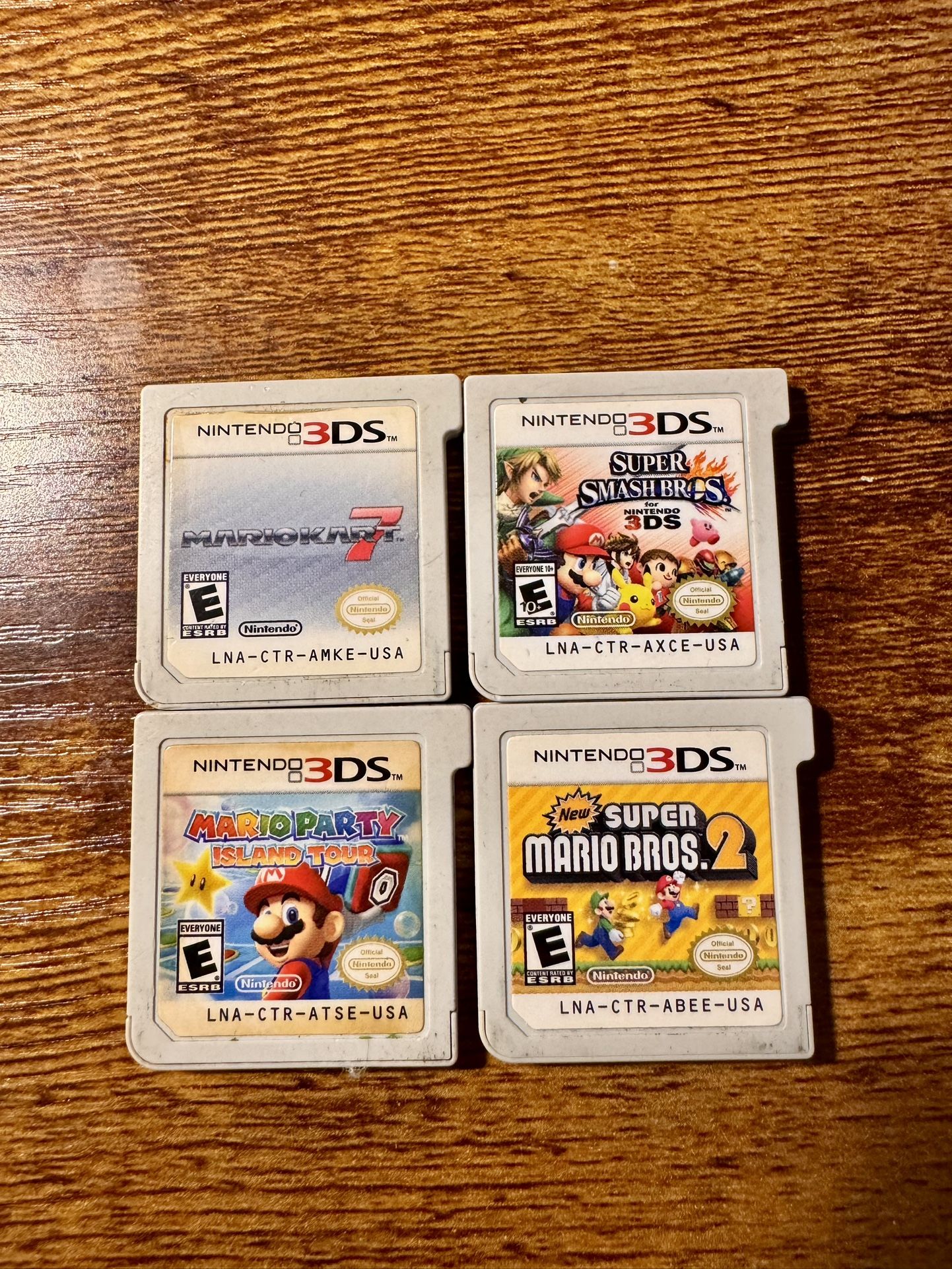 Tested and works fine. All for $40: Mario Kart 7, Super Smash Bros., Mario Party Island Tour, New Super Mario Bros. 2