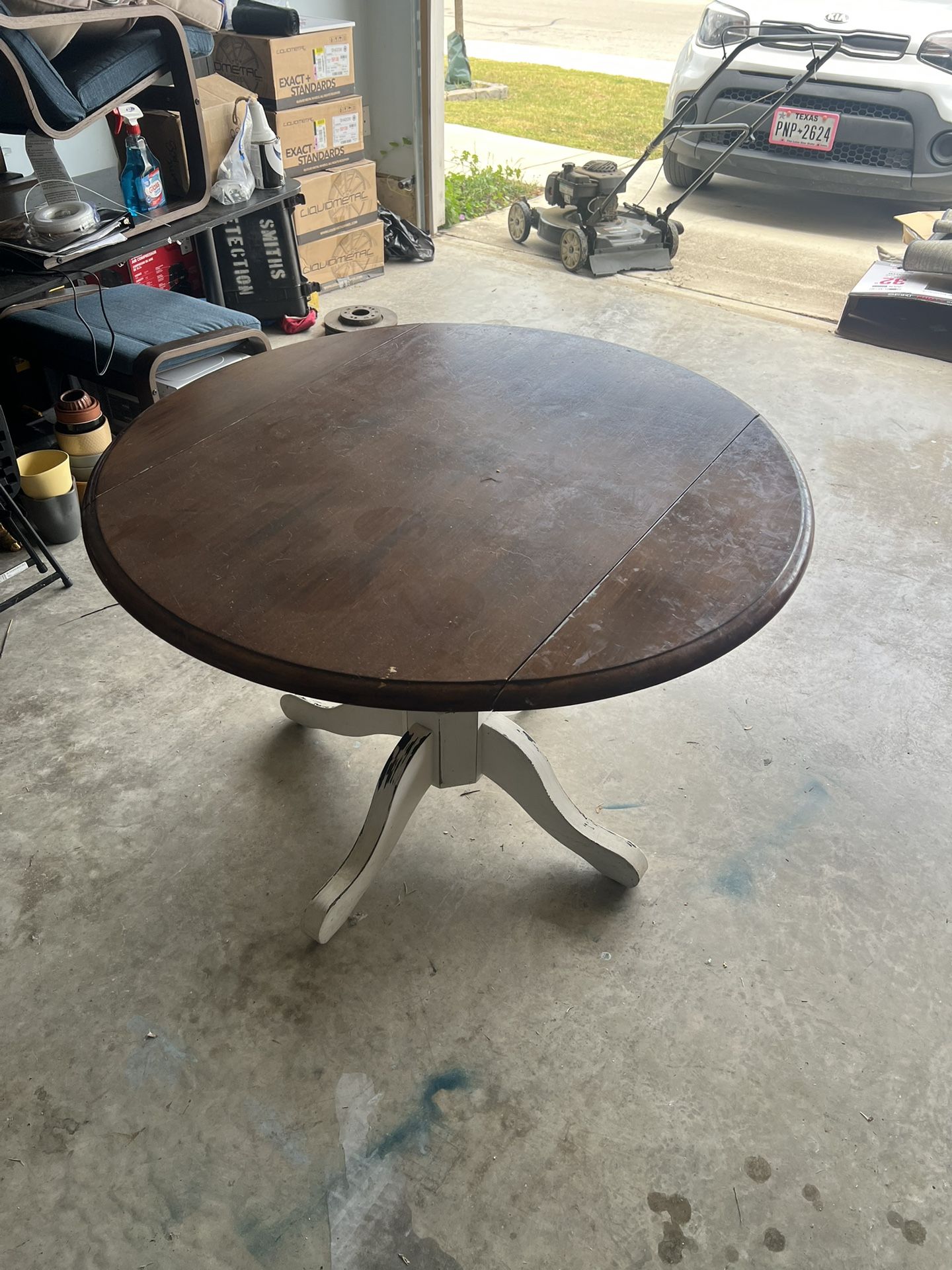 Table set with foldable sides 42 inches in width and sits approx 3 feet off the ground.