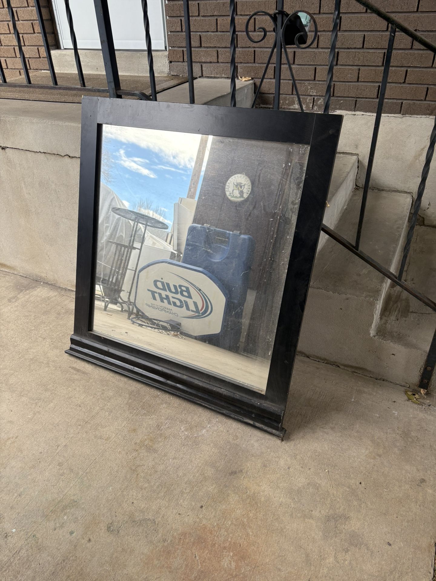 Gently used large mirror. In great condition, just need a cleaning due to being stored in the garage. $35 OBO. Smoke free home. Pick up only. Cash or Venmo accepted.