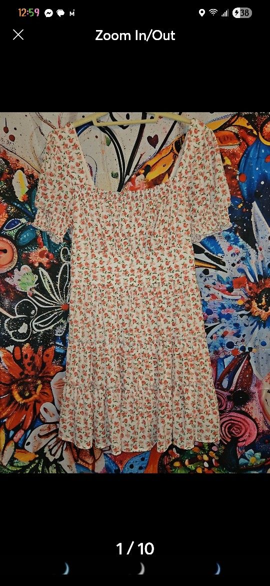 Floral design mini dress, tiered, with built in slip underneath. Size large. Never worn. Bundle for discount.