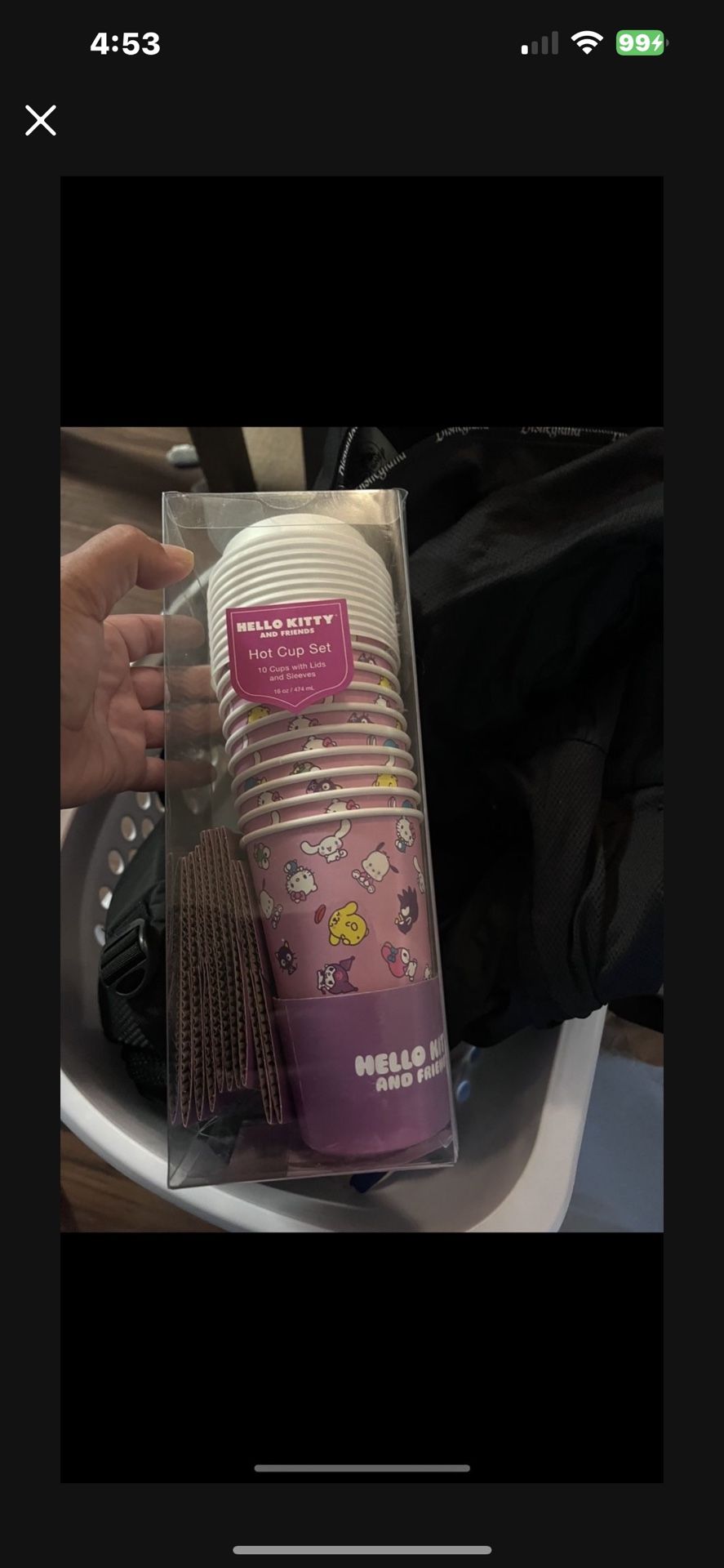 NewHELLO KITTY And Friends Hot Cup Set - 10 Cups With Lids And Sleeves. Pick up only.