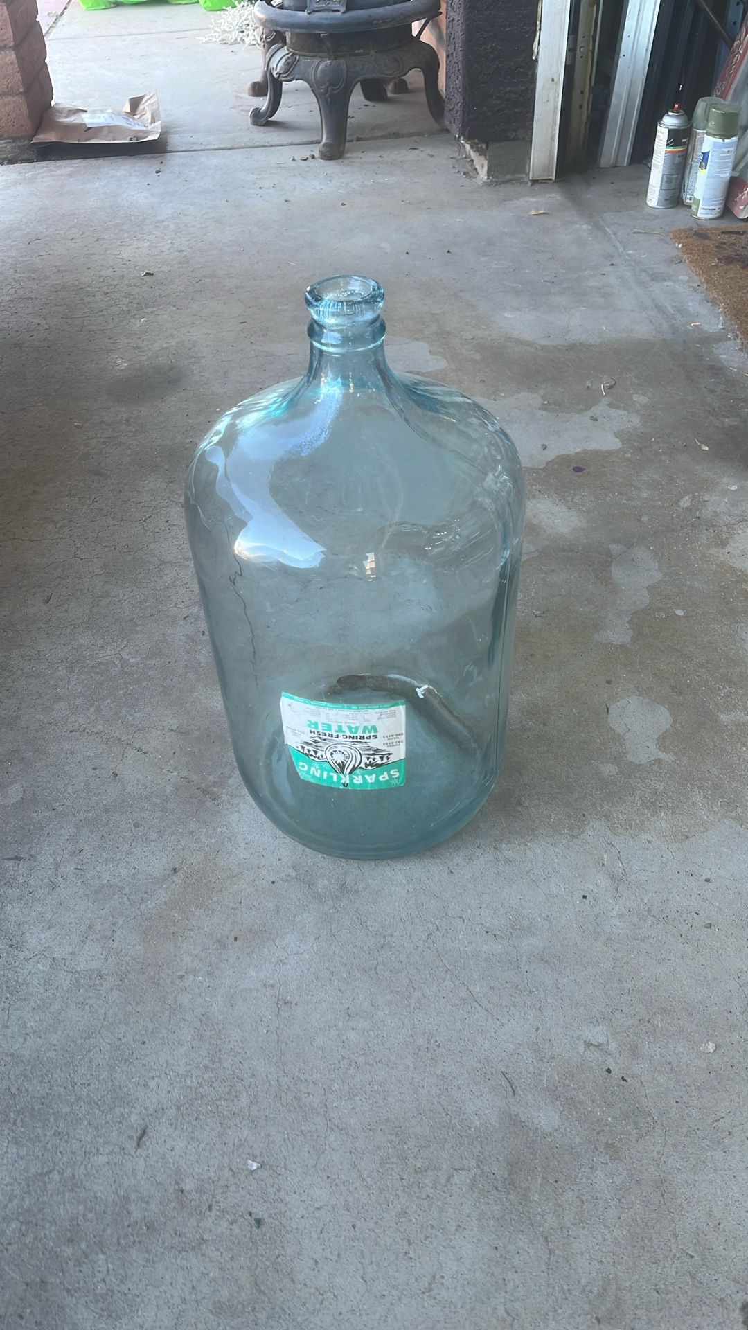 Up for sale vintage 5 gallon water bottle made of glass. The company label is still on the side and also molded into the glass. The bottle looks to be completely usable, but needs to be cleaned out. There are no chips or cracks as far as I can see in this bottle. This would make a great addition to that vintage look you’ve always wanted.