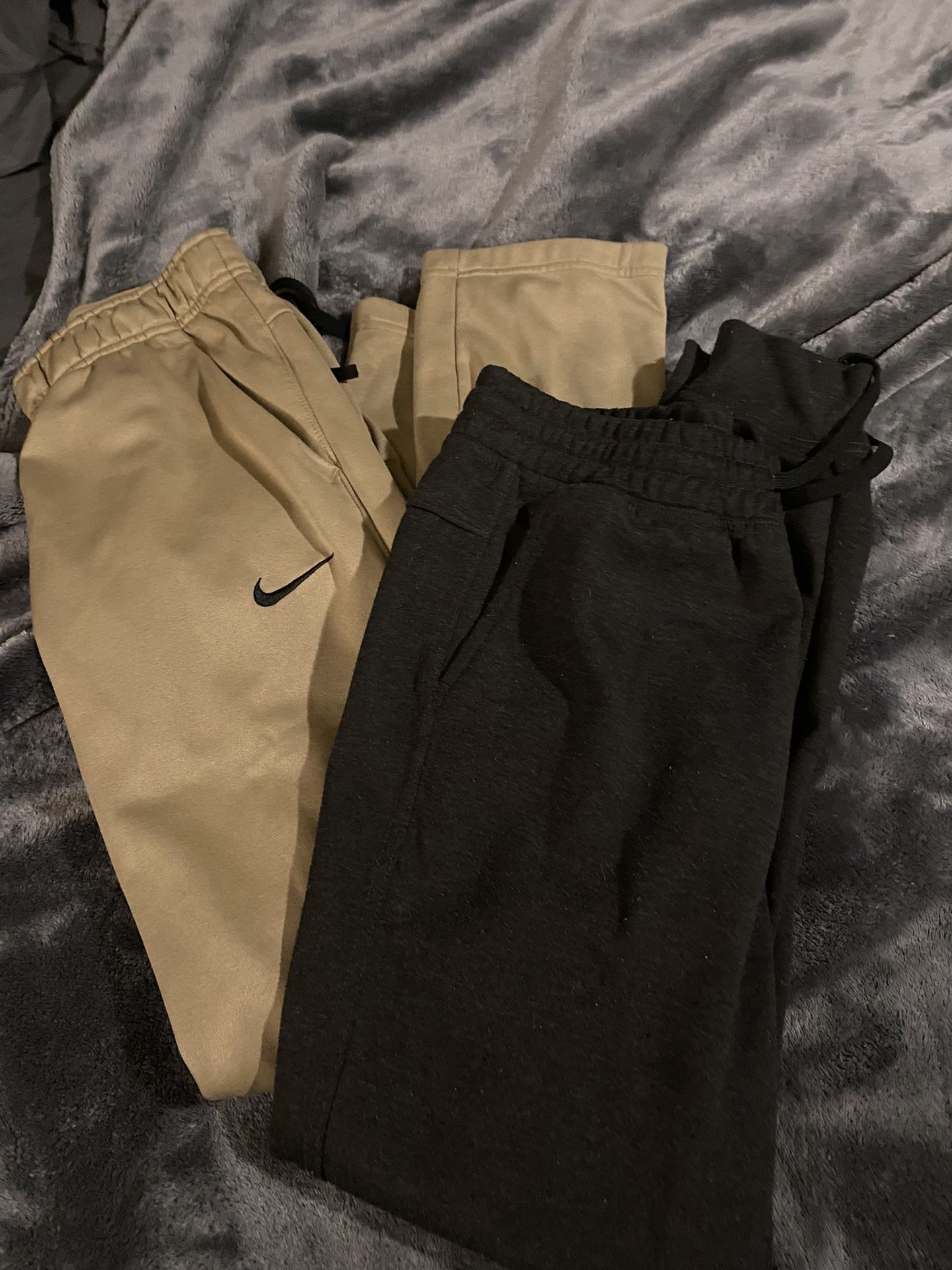 Tan Nike pants have a small pen mark in the photo Size small on both.