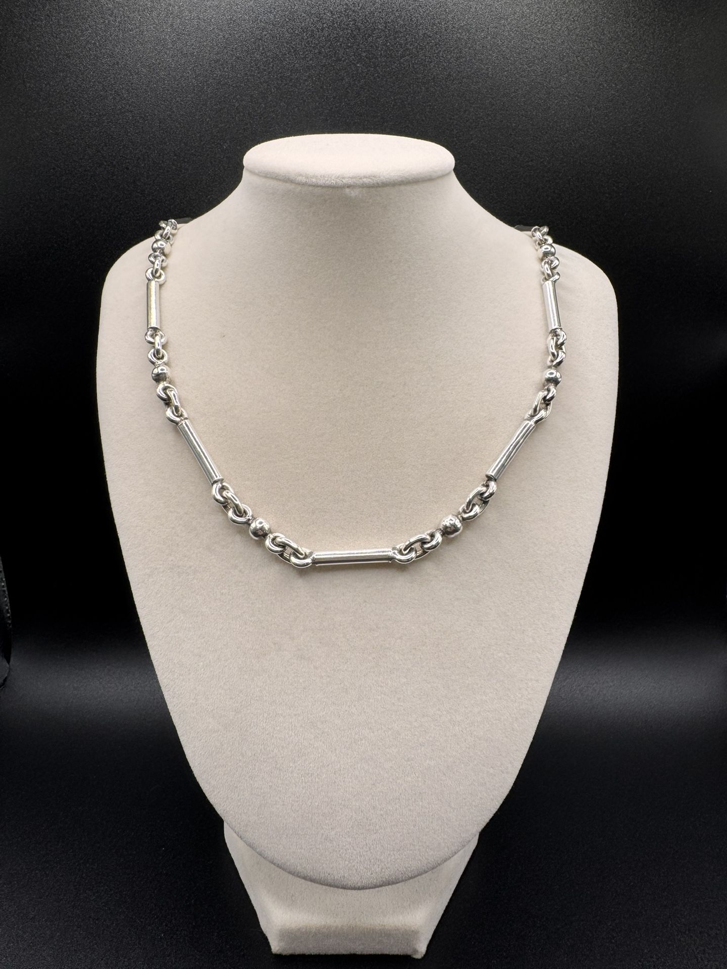Vintage solid sterling silver bar chain necklace. Heavy and thick links. 21 inches long and weighs about 50 grams.