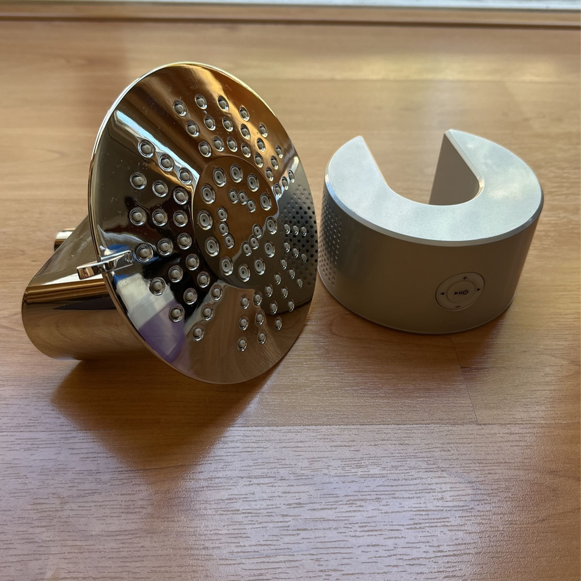 Selling a large shower head with bluetooth speakers designed for the shower head. The speakers slide in to the shower head. The water pressure is pretty dang good with this particular shower head. $20