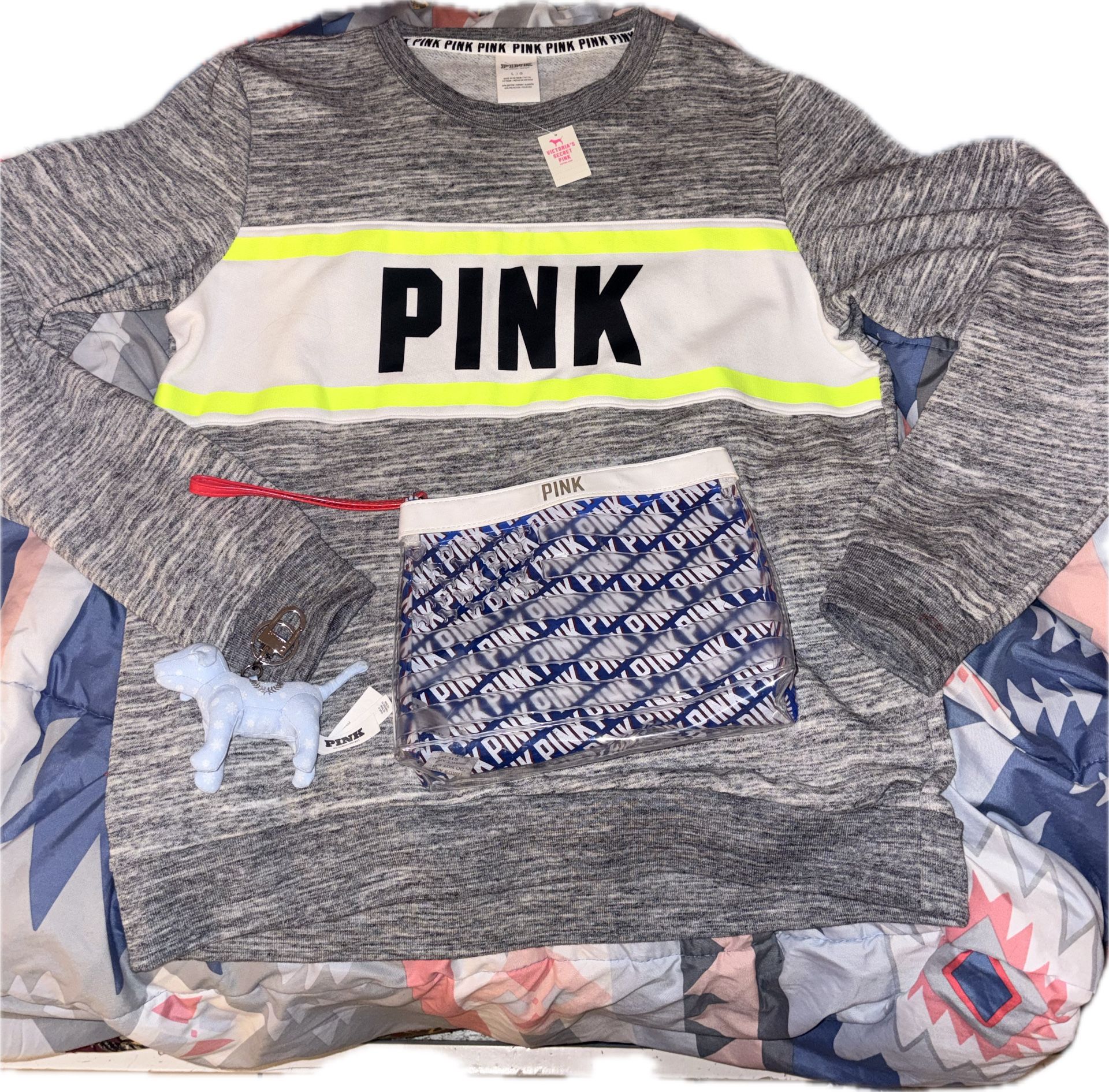 PINK Pullover Crew Sweater BNWT WITH POUCH AND KEYCHAIN