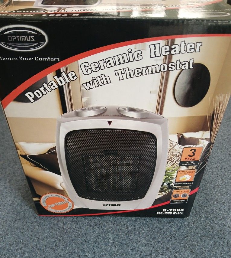 Optimus Portable Ceramic Thermostat Heater H-7004. Automatic Thermostat Control.