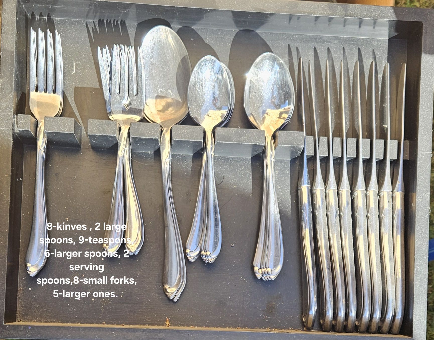 Oneida silverware for sale. Stainless steel. 8 juice glasses included for free. All $20.00