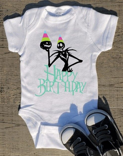 Happy birthday Nightmare Before Christmas Shirt Can be made in any color. Name can be added to the design. T-shirts available in white or black. $10 - onesie (0 - 24M) to toddler tshirt (2T - 6T) $12 - kids t shirts (S - XL) $15 - adult tshirts (S - 2XL) See full account for more designs.