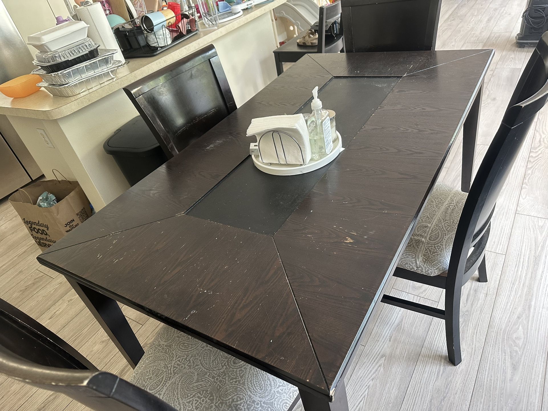 Black table with 4 chair’s for sale we got a new one and just needed it gone