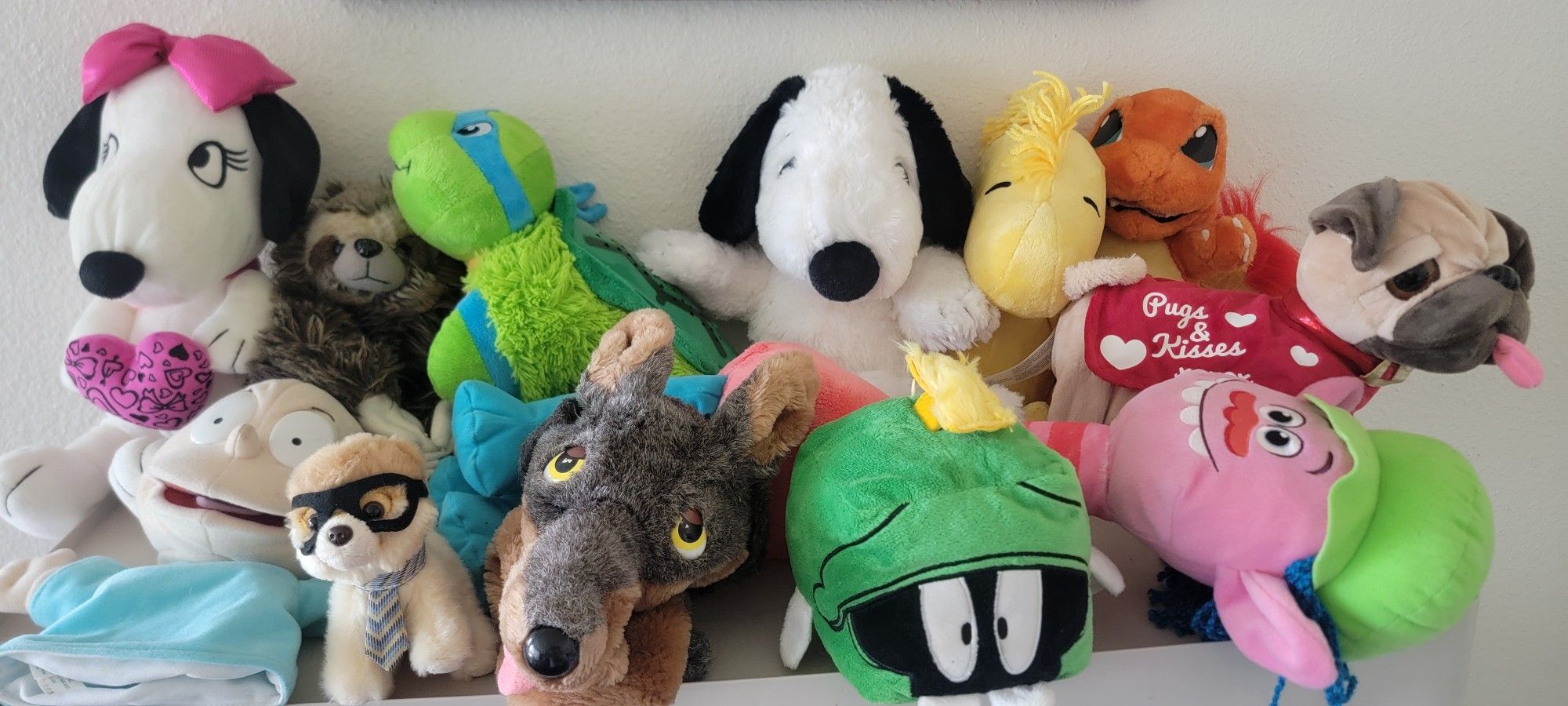In good condition. Snoopy's ears move. Wolf puppet. Light up ninja turtle