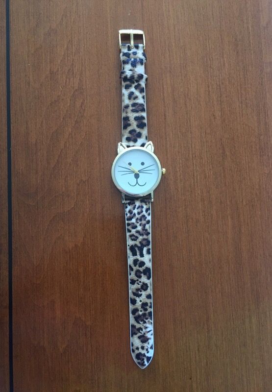 NEW adult size animal print watch with cat face. Still has plastic film on the face. Did not come with a box. Pickup in Windsor Locks or West Hartford.