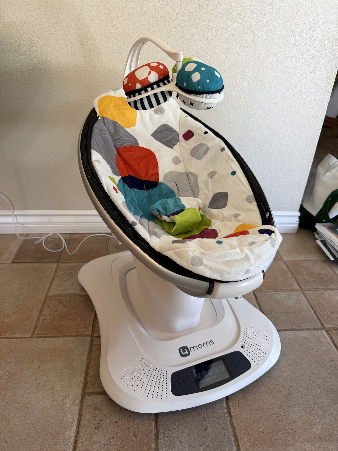 Lightly used 4 moms Mamaroo infant swing with box, instructions, and infant insert in full working order. Has multiple rocking motion options and built in sound machine. Have assembled so you can test. $60 cash only.