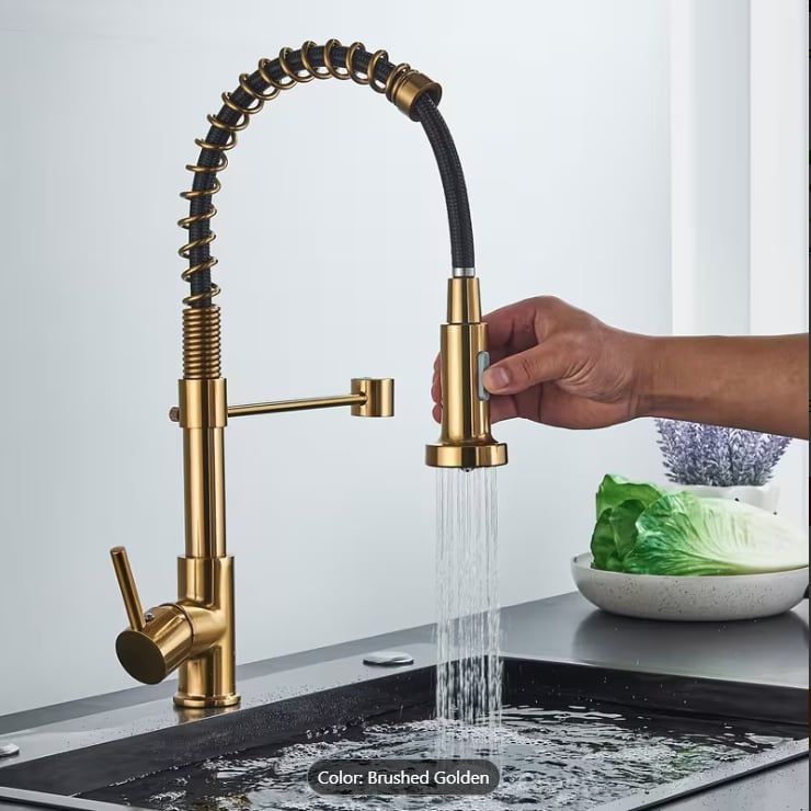 Kitchen Faucet with Pull-Down Sprayer Single-Hole Stainless Steel Sink Faucet, Suitable for Farmhouse, RV, Laundry Room, Outdoor, and Camper. Pull-out Sink Faucet Golden Matte Finish, Sink Kitchen Faucet, Kitchen Faucet, Faucet for Kitchen