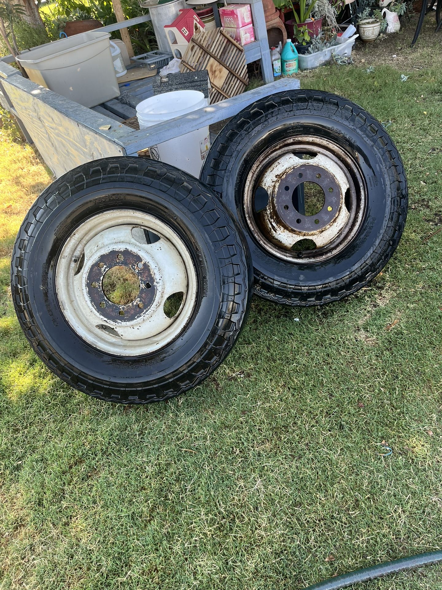 Text for more info on the tires $60 obo Only 2 good for spares or good to go on camper just need air
