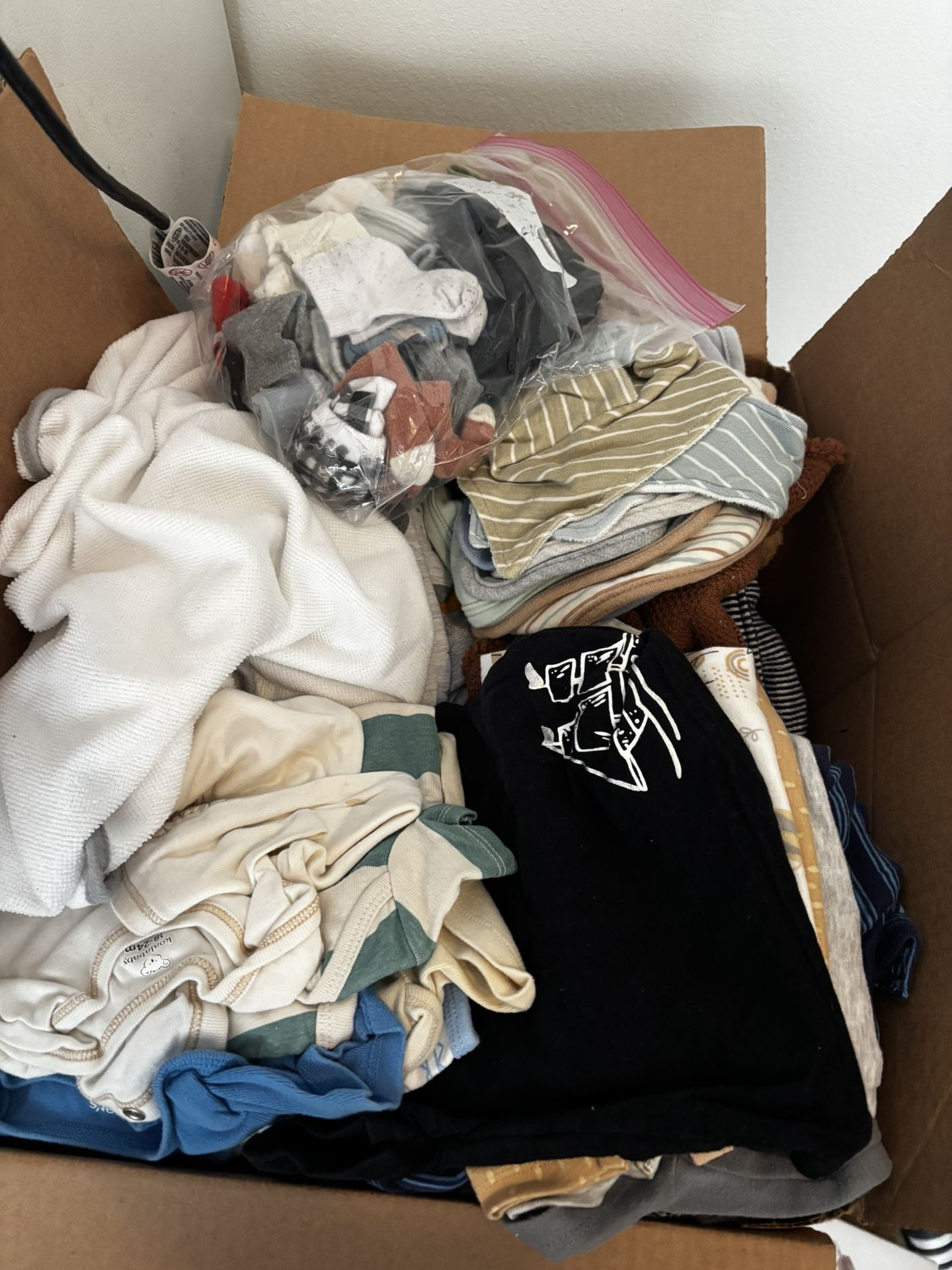 Onesies, bibs, socks, bath towel, pants, outfits